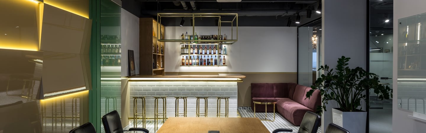The Bacardi-Martini Ukraine Group was established in 1992 and united two companies that are among the oldest producers of alcoholic beverages: Bacardi Limited and Martini & Rossi. A bar is a mandatory attribute of all Bacardi-Martini global offices. It serves as a lounge area and a place for small parties. It also hosts pieces of training for employees, where they learn how to make signature cocktails.