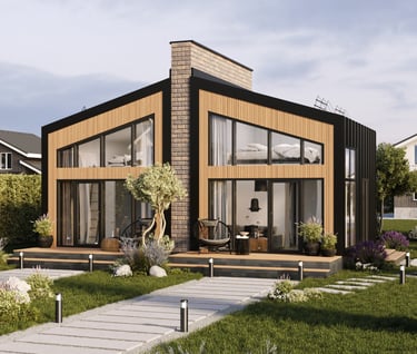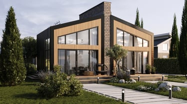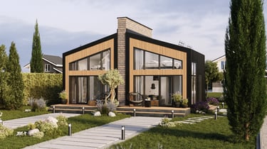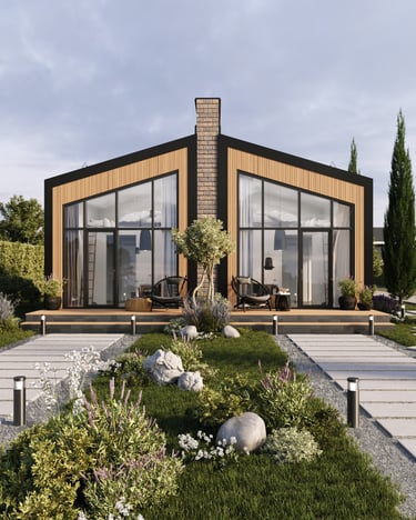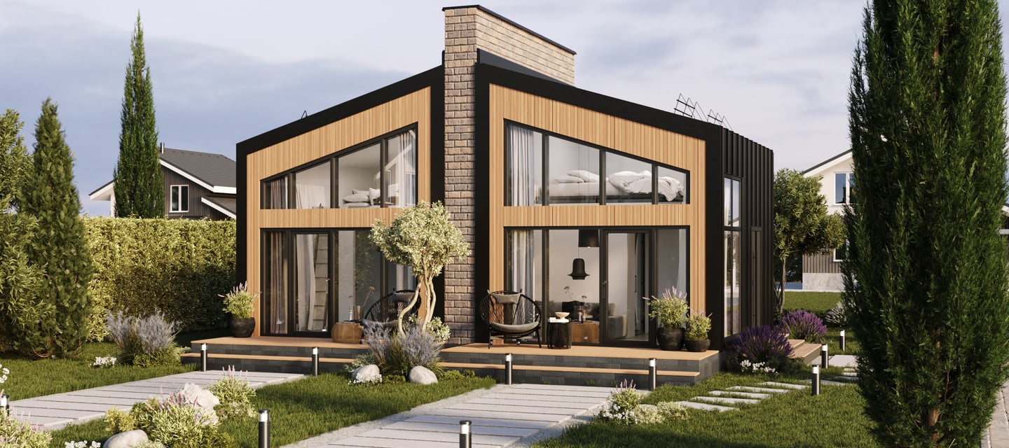 The modern architecture of our projects is combined with thoughtful interior design, ergonomics, and comfort. Our versatile facade solutions, combined with own modular frame technology, allow the house to fit seamlessly into any landscape without harming the environment.